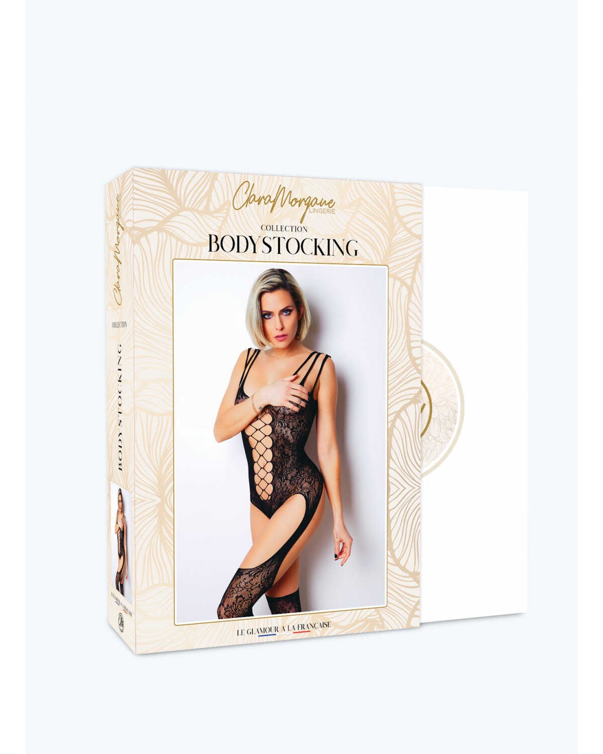 Partir en croisade érotiqueCe très élégant bodystocking en dentelle floral et triple bretelles est ajouré sur le ventre et fermé à l?entrejambe. Il est relié à des bas-jarretières très envoutant. Le tout pour un rendu très glamour. Doux et extensible, ce bodystocking épousera parfaitement les courbes de votre corps. Taille : universelle