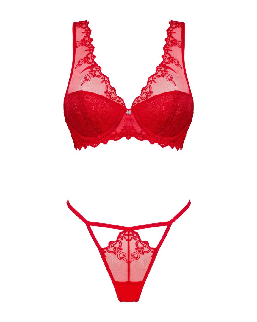 La collection Lonesia est une proposition vraiment chaude pour les amoureux du rouge ! L’ensemble sexy séduit avec des ornements uniques dans une version très élégante et une coupe féminine qui souligne parfaitement la silhouette. Le soutien-gorge assure une belle allure et soutient les seins, et la culotte en matière légèrement translucide souligne de manière phénoménale les hanches et le derrière. Êtes-vous prêt pour une version remplie de sex-appeal de vous-même ? C’est forcément évident ! Découvrez plus de détails : – ensemble Lonesia rouge : soutien-gorge et culotte- soutien-gorge à armatures – maintien parfait et plein de confort- larges bretelles de soutien-gorge – pratique et beau look- fermeture à l’arrière – un ajustement parfait- pendentif bijou entre les seins – un détail charmant- string féminin – hanches et derrière soulignés- matières agréables au toucher (60% polyester, 40% polyamide)