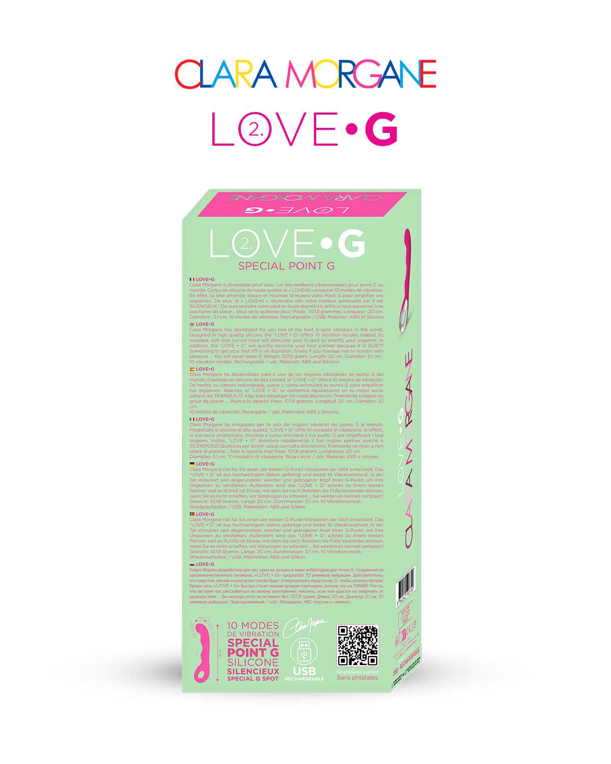 Le Love ? G 2.0 propose 10 modes de vibration différents pensés pour titiller vos sens. Ultra puissant ! Votre intimité sera entièrement imprégnée de délicieuses vibrations. De quoi perdre la tête… Grâce à sa tête arrondie et incurvée, votre point G sera directement en contact avec le jouet, qui saura parfaitement s?en occuper.Il est très discret et ça ne sera probablement pas votre cas lorsque vous l?utiliserez? Silicone de haute qualité. Rechargeable USB. Longueur totale : 20cm , diamètre : 3.1cm, Longueur pénétrante : 13,8 cmUltra silencieux. Hauteur : 20 cmPoids avec emballage : 200 gMatière : Silicone + ABSPour : Femme/ CoupleUsage : Vaginal/ Point GDiamètre : 3,1 cmVibrant : OuiFonctions : 10 modes de vibrationBatterie : Rechargeable USBAlimentation fournie : ouiMoteurs : 1Waterproof : WaterproofTemps de charge : 1h30Prix de vente conseillé : 49,99?