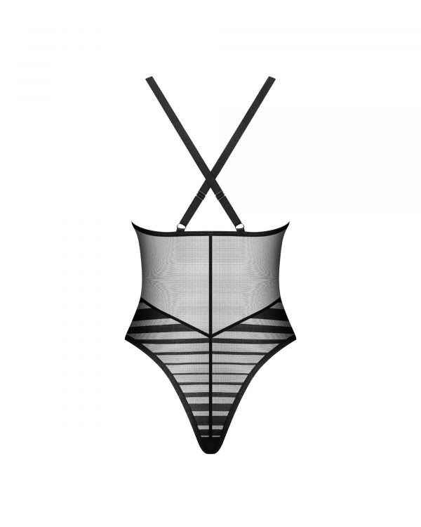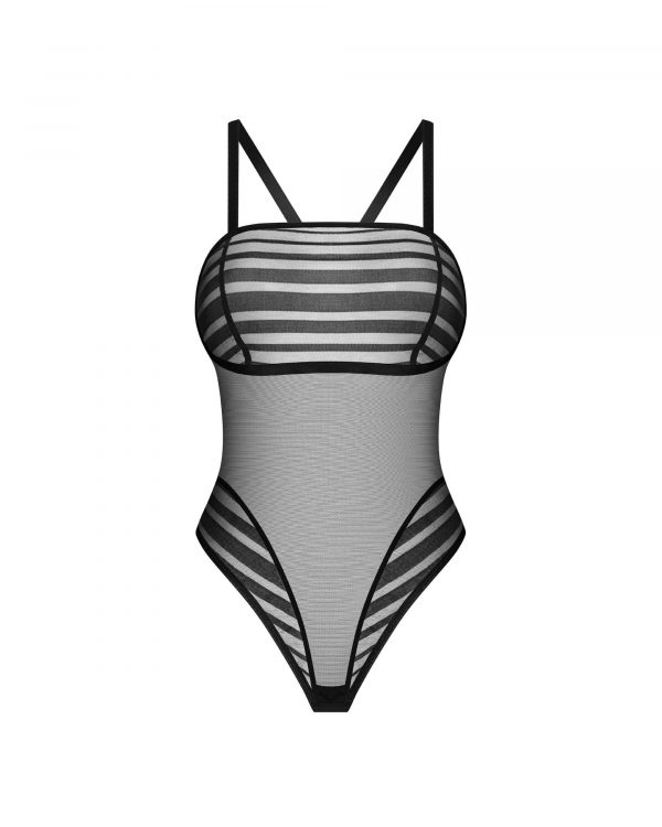 Lune Bellis Body Transparent, étreignant le corps émerveillé avec un dos partiellement exposé. Luxueusement confectionné à partir de tissus noirs, ce teddy présente des rayures foncées sur les hanches et le buste, créant un contraste saisissant avec sa texture lisse. Les bretelles confortables et réglables se croisent élégamment dans le dos, assurant un ajustement parfait.? Body noir? sangles réglables? tissus de qualité supérieure ? coupe classique adaptée à la silhouette féminine? 94 % polyamide, 6 % élasthanne? conçu dans l?UE? sans nickel