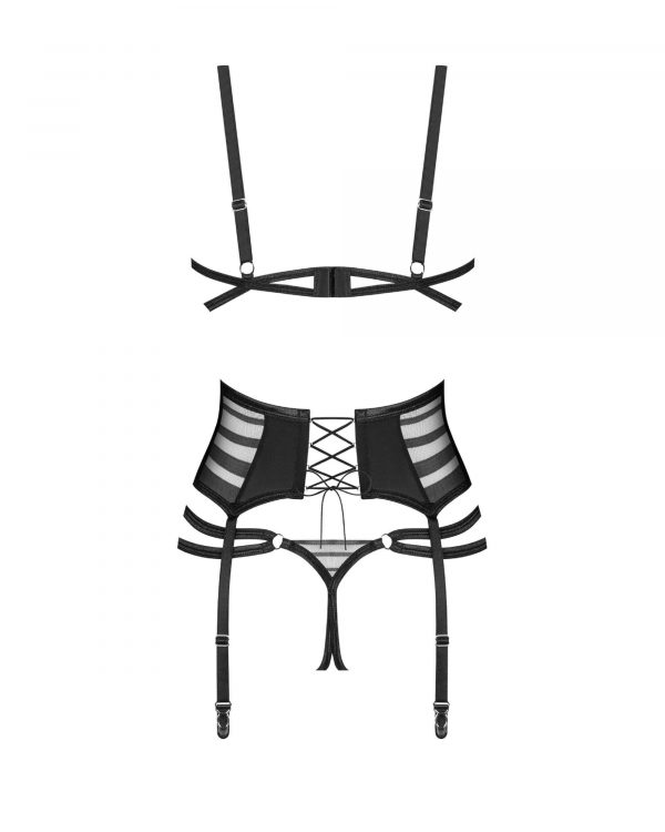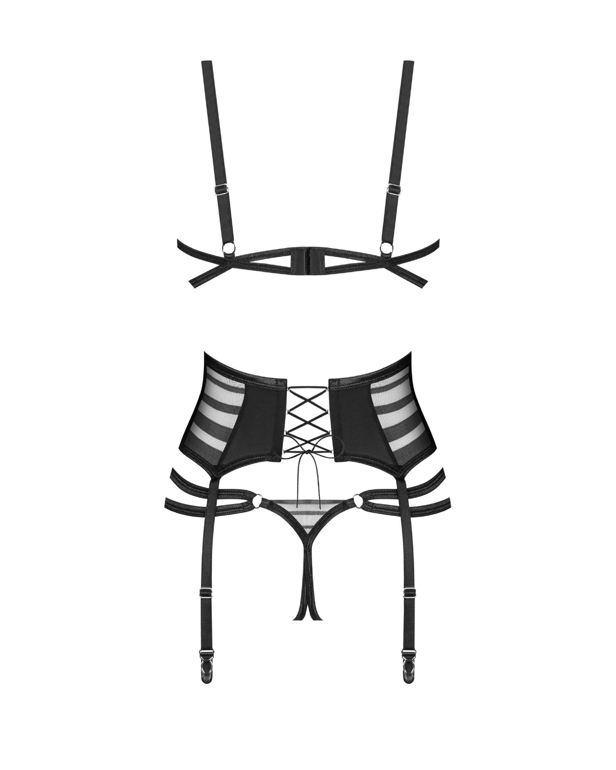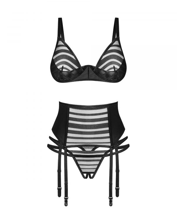 Lune Bellis ensemble ouvert 3 pièces Une élégance provocante avec un soupçon de gaieté. Voici le set de lingerie ouverte 3 pièces Lune Bellis, avec des rayures transparentes pour une allure captivante. Fabriqué à partir de tissus de qualité supérieure, y compris le tissu tissé lisse et maille élastique,Il comprend : un soutien-gorge avec des bonnets ovales pour une coupe flatteuse, un porte-jarretelles large avec bretelles intégrées et un string ouvert pour une finition audacieuse. ? soutien-gorge, string et porte-jarretelles noirs? tissu doux au toucher et maille transparente? Bonnets à armatures et courroie de soutien? Ajustements pour un confort ultime? fermeture à lacets à l?arrière? 90 % polyamide, 10 % élasthanne? conçu dans l?UE? sans nickel