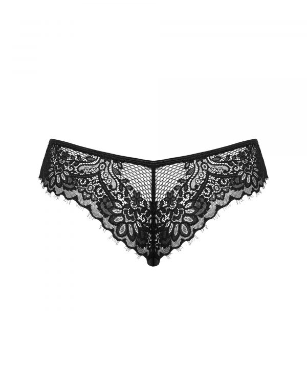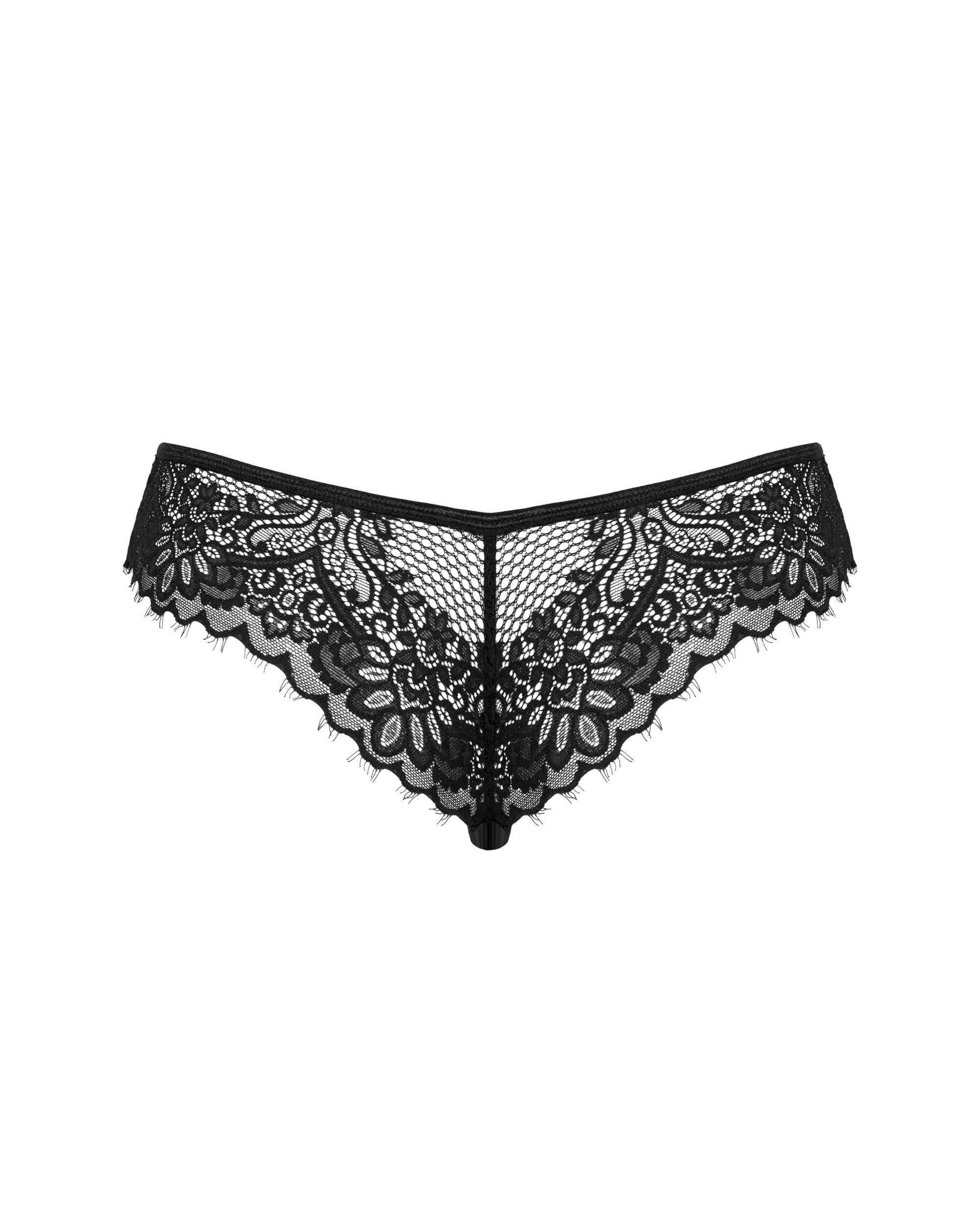 Maderris panties Classic Maderis panties are an ideal choice for any occasion. The infallible lace and a tempting cut that accentuates the derriere will be perfect both on a date and at work. If you are looking for lingerie that will give you confidence, then it is an absolute must-have in your wardrobe! Find out more details:- black lace panties- sexy cut emphasizing the bottom- a silver pendant ? an interesting addition- pleasant to the touch fabric ? a guarantee of comfort (90% polyamide, 10% elastane)