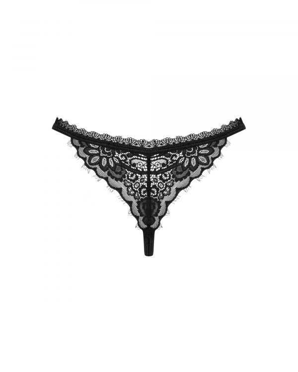 String Maderris Le string Maderris est un excellent choix pour toutes les situations. La coupe universelle et minimaliste vous garantira un confort tout au long de la journée, et la dentelle sexy vous donnera confiance. Si vous recherchez une lingerie polyvalente qui ira avec tout, misez sur ce design unique. Découvrez plus de détails :- string noir séduisant- dentelle à l’arrière – accentue magnifiquement le derrière- un pendentif en argent – accrocheur- tissu élastique – assurera le confort de port (85% polyamide, 15% élasthanne)