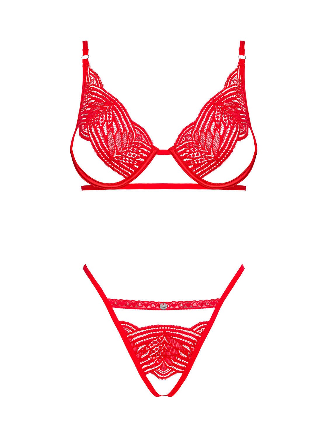 Ensemble Mellania Êtes-vous prêt pour une nuit très longue et chaude dans votre chambre ? Si c’est le cas, assurez-vous d’apporter cet ensemble super sexy de la collection Mellania avec vous. Les coupes épicées et le style audacieux vous permettent de combler vos désirs les plus profonds, et le rouge juteux enflammera les sens ! La dentelle fantaisie ajoute de l’élégance et enveloppe délicatement le corps, et la culotte à l’entrejambe ouverte porte les jeux coquins à un niveau bien supérieur ! Découvrez plus de détails : – Ensemble Mellania : soutien-gorge et culotte sans entrejambe- soutien-gorge sexy avec découpes – un look incroyablement féminin !- armatures – maintien parfait de la poitrine- bretelles et fermeture réglables – ajustement parfait- dentelle élégante – ajoute du style et de la classe- une culotte avec un entrejambe ouvert et une coupe alléchante au-dessus du derrière – plus de plaisir et de piquant !- tissu élastique agréable au toucher (90% polyamide, 10% élasthanne)