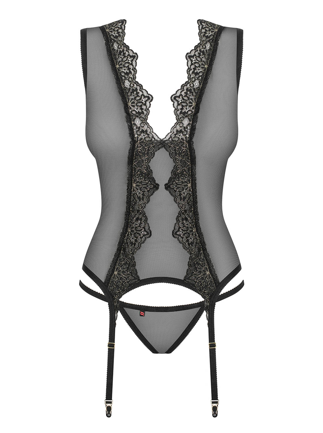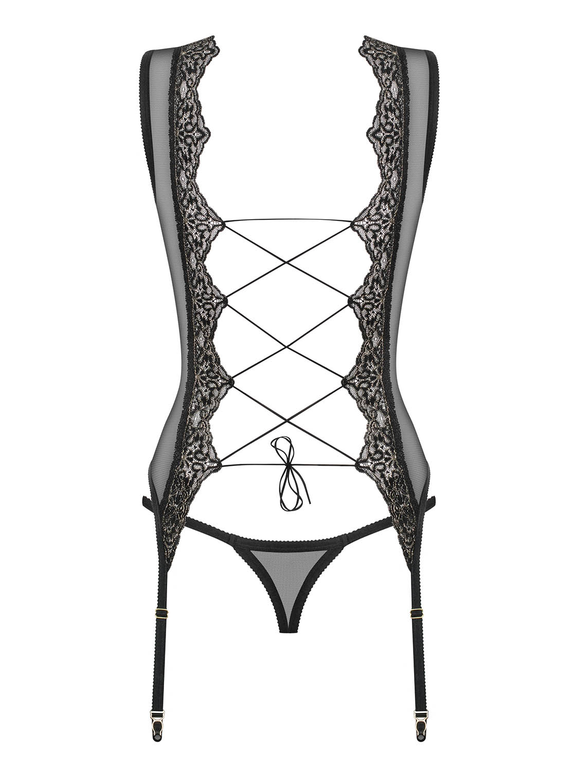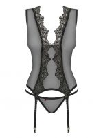 Style fantastique, ornement élégant et tissu transparent. Ne cherchez pas plus loin si vous voulez une nuit pleine de plaisir avec une pincée de piment. Le corset Meshlove vous donnera tout cela et plus encore, la seule question est, êtes-vous prêts pour une telle dose de passion ?Jetez un ?il aux détails :Motif de dentelle unique et décoratif s’étendant des épaules aux hanches Laçage phénoménal dans le dos Porte-jarretelles réglables String noir inclus Les bas ne sont pas inclus dans l’ensemble, nous recommandons notre modèle S800 Composition : 90% polyamide, 10% élasthanne