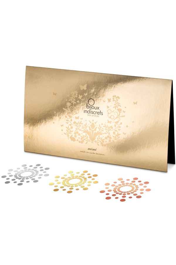 Adorable ensemble de cache-tétons à la façon d’un tatouage. Ce kit comprend 3 jeux (3×2) de nipples de coloris différents. Ils se positionnent comme un transfert métallique temporaire.