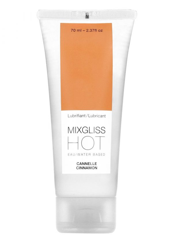 Mixgliss Hot est un lubrifiant à l’eau sensuel légèrement chauffant et intensifiant, à l?arômenaturel de cannelle. Ce lubrifiant chauffant apporte une douce sensation de chaleur qui stimule et rend plus sensible leszones intimes de la femme comme de l’homme. Ce lubrifiant intime chauffant est d’une contenance de 70ml.SPÉCIFICATIONS TECHNIQUES? Arôme naturel de cannelle.? Ingrédients : aqua, propylene glycol,glycerin, aroma, hydroxyethylcellulose,phenoxyethanol, sodium polyacrylate,allantoin, ethylhexylglycerin, aloe vera.? Usage intime; compatible avecpréservatif et sextoy. ? Précautions: en cas de contact avecles yeux, rincer à l?eau. En cas deréaction allergique, arrêter l?utilisation.Tenir à l?abri de la lumière & la chaleur. ? Fabriqué en France sous contrôlepharmaceutique? Contenance: 70 ml ? Pack: tube + capsule service + scellé? Lot + date de péremption: voir soudure ? Validité: 60 mois. ? Langues pack: FR, EN, AL, NL, ES, IT.