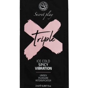 Enfin un format permettant d’apporter avec vous ce gel intensifiant de plaisir… pour lui et pour elle…La combinaison du froid, du piquant et de la vibration augmente le plaisir du couple expérimentant une sensation unique…Vous ne vivrez cette expérience qu’avec notre Triple X de Secret Play ! L’effet dure environ 20 minutes, vous pouvez recommencer autant qu’il le faut…Monodose de 2 ml