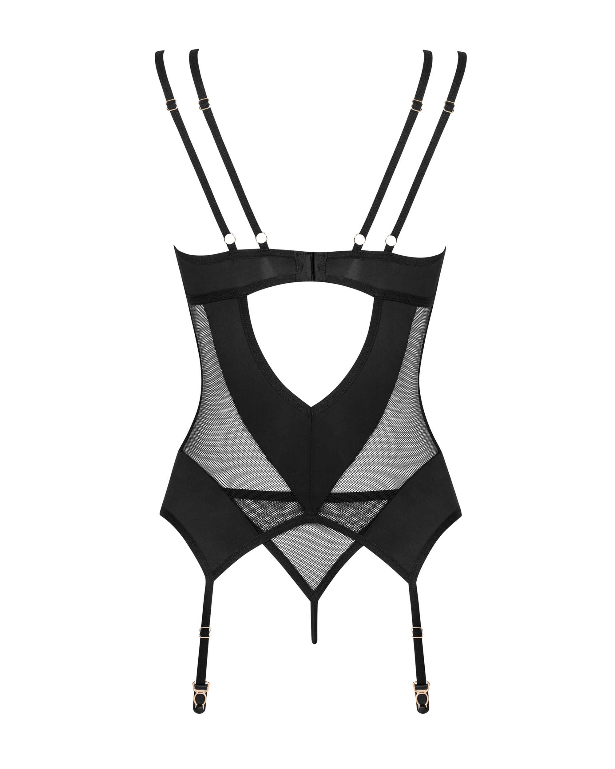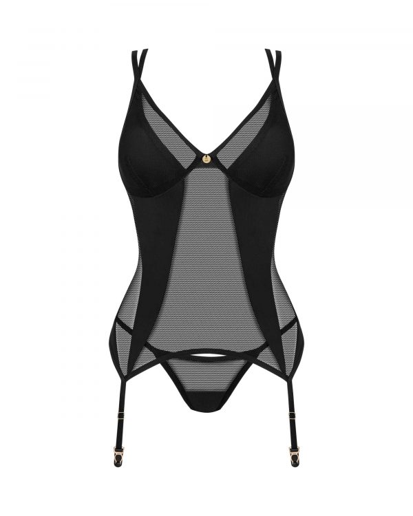 Corset et string NesariVoyez par vous-même que les solutions universelles ne doivent pas être ennuyeuses. Regardez ce corset incroyablement bon goût. Sa particularité réside dans une combinaison intéressante de matériaux doux qui envelopperont tendrement votre corps et offriront un confort élevé. Goûtez aux plaisirs sensuels.Pour en savoir plus :- ensemble de sous-vêtements noirs ? corset et string- excellent ajustement grâce aux sangles réglables et à la fixation en plusieurs étapes- l?aspect sensuel du buste sera fourni par des bols avec armature et sangles doubles- combinaison de tissu lisse avec maille transparente ? combinaison originale- pendentif brillant ? attire l??il- porte-jarretelles intégrés ? ajouter chic- agréable au toucher ? prend soin de votre confort(85% polyamide, 15% élasthanne)