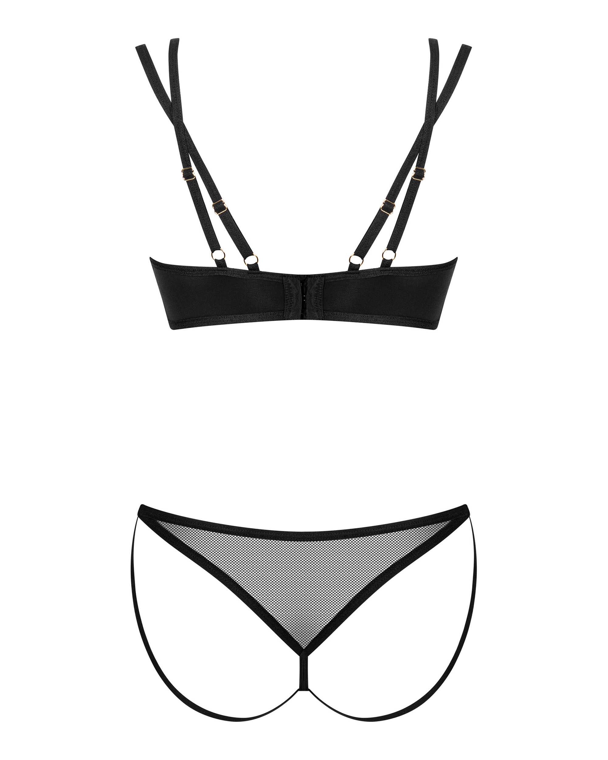 Nesari ? Ensemble de 2 piècesPrécipiter les choses trop rapidement n?est pas votre style ? Préférez-vous prendre votre temps à célébrer des moments, à les remplir de petits plaisirs ? Si oui, vous aimerez certainement cet ensemble. Le tissu uni combiné à la maille transparente créent un design subtil qui enchante par sa simplicité et son caractère sensuel. Sentez-vous attrayant où que vous soyez!Pour en savoir plus :- string et soutien-gorge noirs- la fixation en plusieurs étapes et les sangles réglables assurent un ajustement parfait- des tissus sensuellement juxtaposés- pendentif doré ? détail brillant- tissu confortable ? agréable au toucher(85 % polyamide, 15 % élasthanne)
