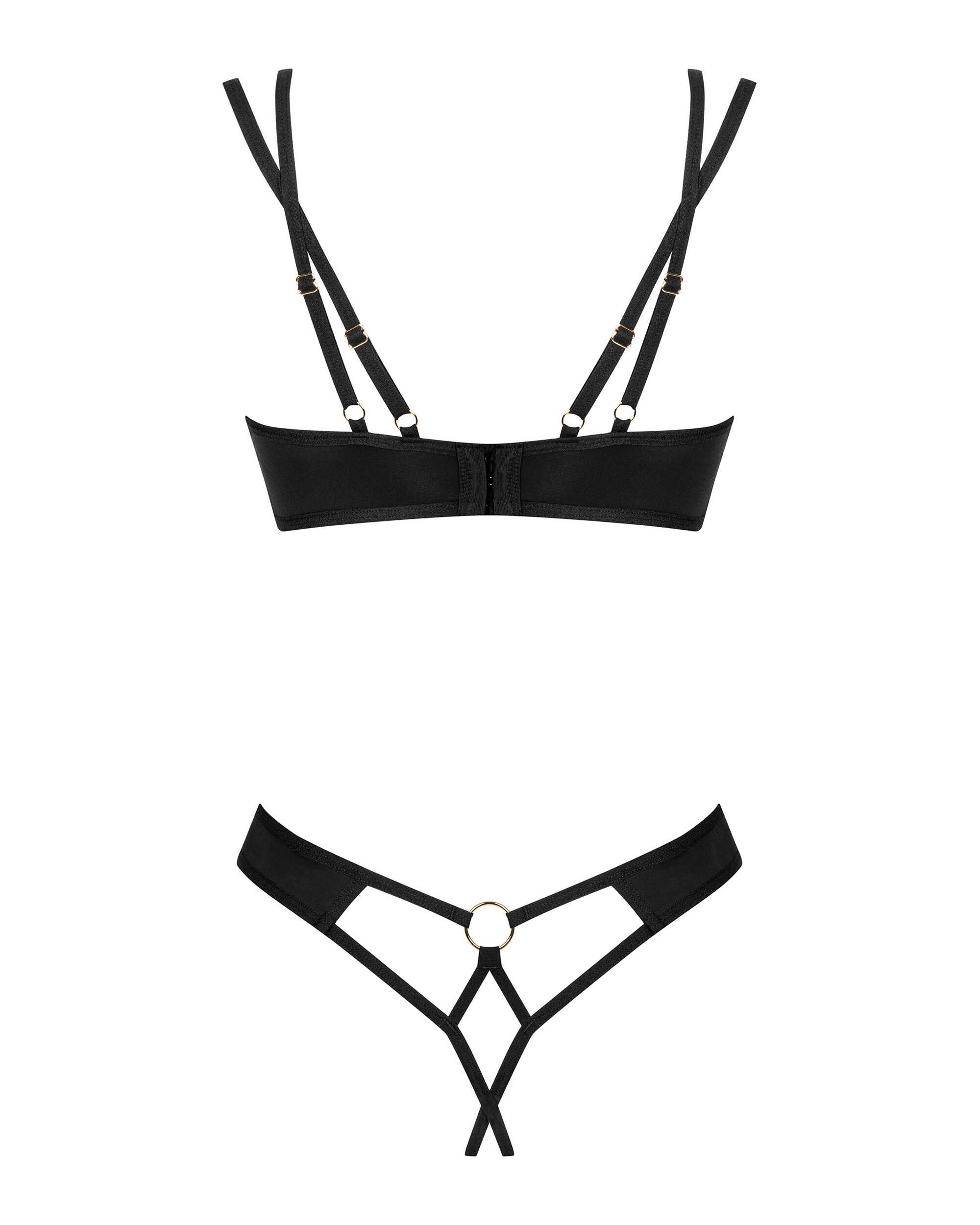 Nesari ? Ensemble ouvert 2 piècesDès que vous enfilerez cet ensemble unique, vous attirerez toute l?attention. Le design épicé de ce sous-vêtement ajoutera du charme, accentuera vos charmes et libérera de l?énergie féminine. La combinaison parfaite de tissu lisse et transparent épouse la peau, assurant confort et liberté. Profitez du plaisir de la proximité?Pour en savoir plus :- soutien-gorge et string noirs- la coupe ouverte assure une atmosphère chaude- les sangles réglables et la fixation à plusieurs niveaux assurent un ajustement parfait- pendentif doré ? un détail intéressant- une combinaison unique de tissus, gage de confort et d?élégance(85% polyamide, 15% élasthanne)
