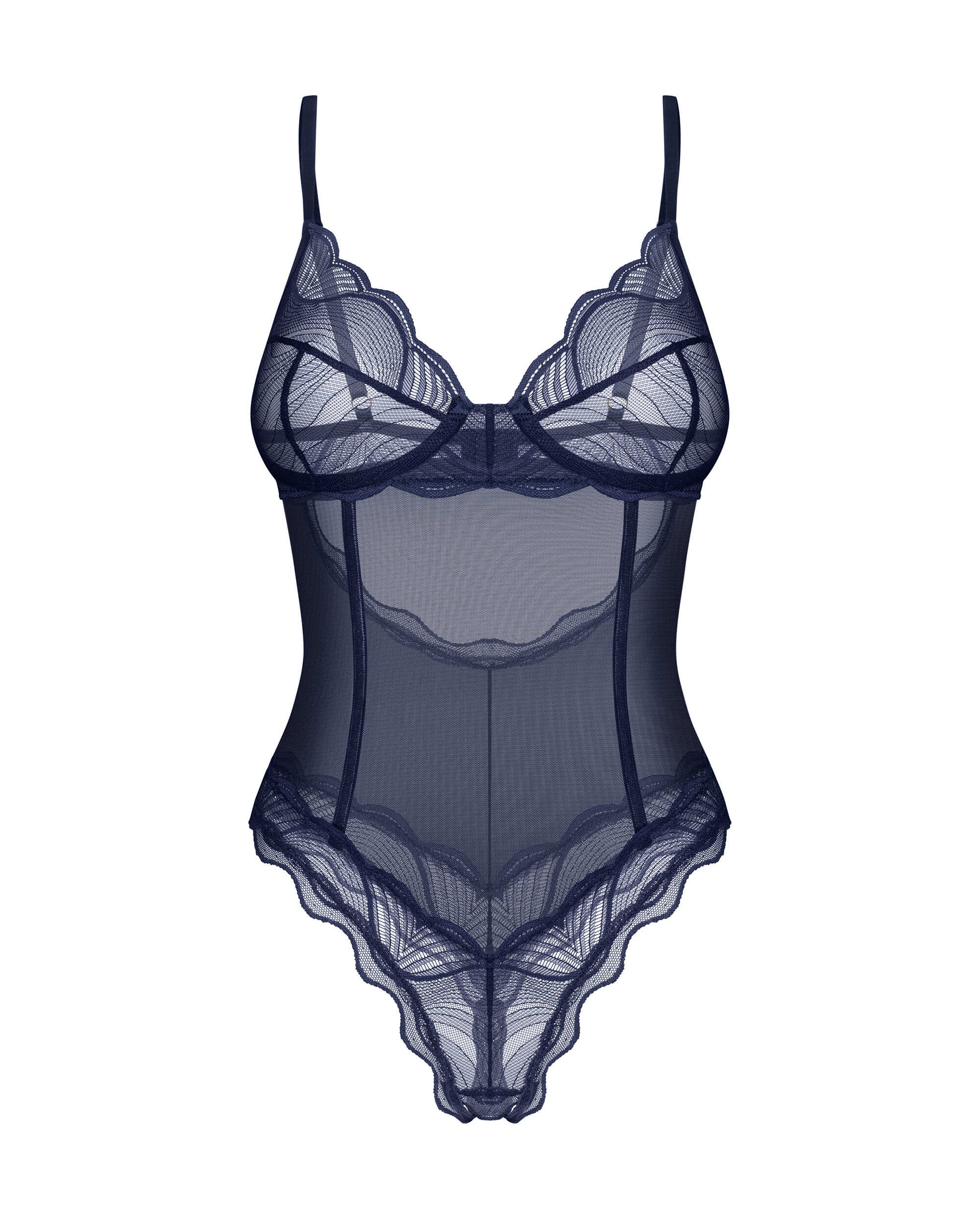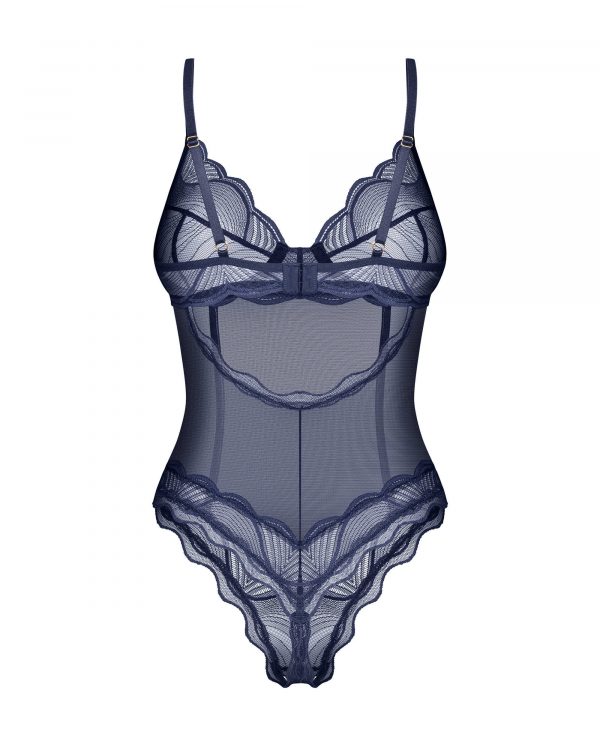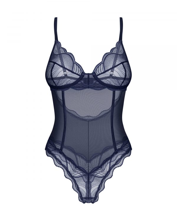 Body ouvert bleu Savourez le charme du body ouvert Nightly blue, un chef-d??uvre bleu marine qui allie parfaitement luxe et design audacieux. Fabriqué en maille transparente et orné de détails exquis en dentelle, ce body accentue vos courbes avec un entrejambe ouvert audacieux et un dos décolleté séduisant. Les bonnets à armatures offrent un soutien, tandis que les bretelles réglables et la fermeture sécurisée au crochet et aux yeux assurent une coupe parfaite et séduisante.? Un body bleu marine à entrejambe ouvert pour une élégance audacieuse ? Bonnets à armatures pour un meilleur soutien? Maille transparente avec dentelle? Découpe dos et fesses exposées pour un look provocant ? Sangles réglables pour un ajustement personnalisé? Fermeture dos-nu sécurisée? Composition : 94 % polyamide, 6 % élasthanne ? Sans nickel pour les peaux sensibles? Conçu avec soin dans l?UEEmbrassez l?art de la sophistication séduisante avec le Nightly Blue Teddy, où le luxe rencontre un design audacieux et provocant.