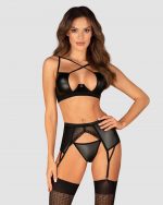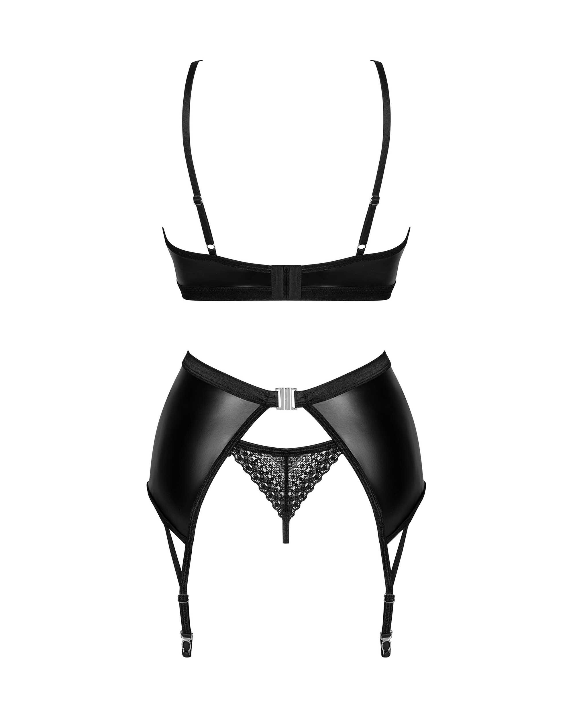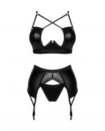 Ensemble Norides 3 pièces Le visage rougi, vous recherchez une lingerie non conventionnelle qui allumera le feu de la passion dans votre chambre ? Cherchez pas plus loin! Choisissez l’extraordinaire ensemble Norides 3 pièces ! Laissez-vous séduire par le noir profond d’un tissu subtilement brillant au fini dentelle et sentez-vous spéciale ! Découvrez plus de détails:- ensemble de lingerie noir contenant un string, un soutien-gorge et un porte-jarretelles- ajustement parfait grâce à la fermeture à plusieurs niveaux et aux bretelles réglables- armatures soulignant parfaitement la poitrine- pendentif brillant ? attire le regard- inserts en dentelle combinés de manière intéressante avec un tissu lisse- bas non inclus dans l’ensemble (soutien-gorge ? 100% polyuréthane ; porte-jarretelles & string ? tissu : 100% polyuréthane ; tissu : 90% polyamide, 10% élasthanne)