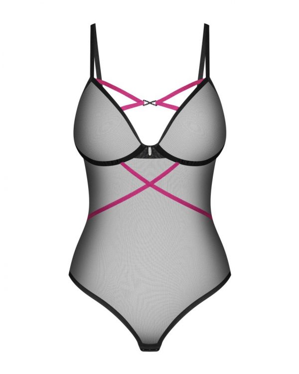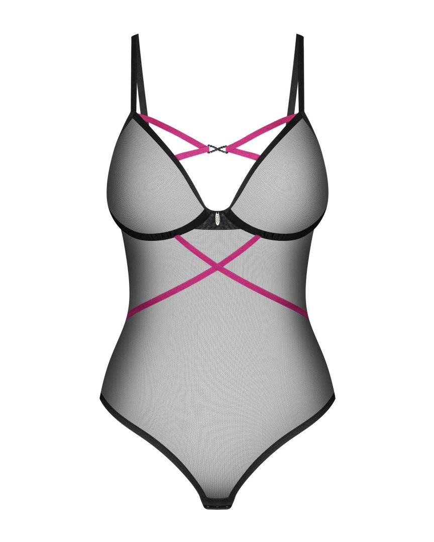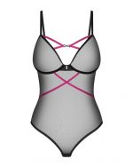 Novenes bodyDécouvrez l?allure de Novenes Teddy, conçu pour les femmes confiantes. Fabriqué à partir de tissu transparent, il flatte chaque forme. Des éléments brillants et des bretelles violettes contrastent avec goût le noir, ajoutant une touche d?élégance. ? teddy noir, transparent ? bonnets à armatures ? sangles réglables ? fixation en trois étapes à l?arrière ? fixation en trois étapes à l?entrejambe ? détails brillants avec des zircons noirs ? 94 % polyamide, 6 % élasthanne ? conçu dans l?UE ? ne contient pas de nickel