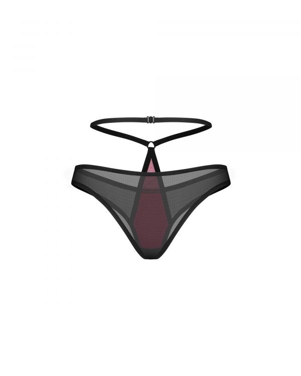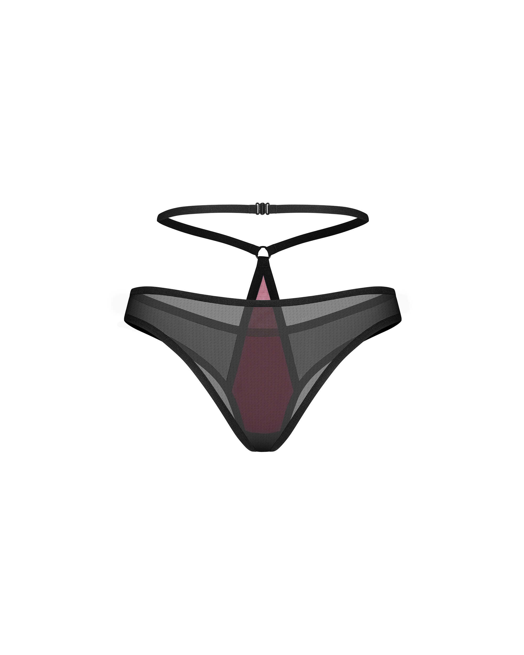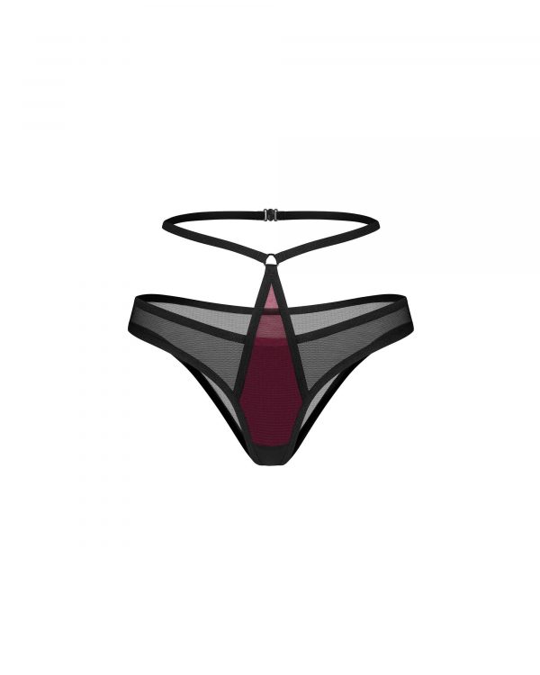 Parisel Double culotte Les culottes doubles Parisel en bordeaux et noir allient design contemporain et confort luxueux. Confectionnées en filet de qualité supérieure, ces culottes offrent un toucher doux et délicat sur la peau. L?élégante fermeture à lanières au dos ajoute un détail raffiné et sophistiqué, rendant ces culottes à la fois élégantes et confortables. ? culotte en filet souple bordeaux et noir ? matériaux de qualité supérieure- Garniture élégante et détail de la sangle arrière pour plus de sophistication ? 94 % polyamide, 6 % élasthanne- Conçu dans l?UE ? sans nickel pour les peaux sensibles