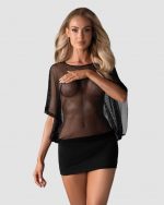 Mini-robe frivole, sexy ! Haut séduisant et mini-jupe. Faut transparent avec de larges manches. Mini-jupe faite de tissu agréable et flexible. De même matière que le haut.. String sexy inclus. Composition : 90 % de Polyamide, 10 % d’Élasthanne