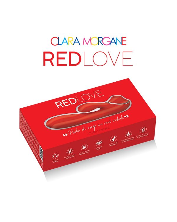 Rouge mon amourLe rouge est symbole de passion et le Red Love en est une définition. Ce 2 en 1 tout juste incroyable propose un stimulateur clitoridien et un rabbit, une association hors du commun :- Stimulateur clitoridien doux à intense- 7 modes de succion et 10 modes de vibration- Rabbit souple- Silicone médical de haute qualité- Silencieux- Rechargeble usb – 100 % waterproof Référence : 19354EAN : 3760242193546 Amusez-vous avec ardeurLa promesse orgasmique de ce fabuleux 2 en 1 est de taille. Le rabbit est doté de 2 moteurs avec 10 modes de vibration, il est très doux et très souple ce qui le rend très maniable. Le stimulateur clitoridien possède 7 modes de succion, du plus doux au plus intense. Au total, 3 moteurs, 2 jouets en 1 et un plaisir enflammé.Il est 100% waterproof et peut être utilisé sous la douche ou dans le bain. Il se nettoie très facilement.Il est rechargeable grâce à un câble usb. Utilisation :L?embout du stimulateur épouse parfaitement le gland du clitoris, les succions le font gonfler de plaisir et les vibrations se diffusent sur l?entièreté de l?organe. Plaisir intense et profond garanti, l’orgasme est au rendez-vous !La partie lapin est quant à elle très souple et très maniable. Cela permet une insertion en douceur, pour un maximum de confort. Vous pouvez y aller étape par étape afin d’accueillir vos sensations et de vous laisser aller, peu à peu, vers l’extase.A tout moment, variez le plaisir en passant de l’intérieur et l’extérieur et inversement. Sans oublier une pointe de lubrifiant, c’est la base.Le petit + info :Le clitoris possède un gland, deux corps caverneux de 12 à 15 cm qui gonflent et grandissent sous l?effet de l?excitation. Il est situé à l’intérieur de la vulve, protégé sous les grandes lèvres et positionné au bas du pubis. C’est un organe invisible qui provoque des sensations indescriptibles.Il suffit de quelques caresses du doigt, des lèvres ou de la langue pour le mettre dans tous ses états. Le clitoris est probablement LA zone érogène la plus sensible chez les femmes. Et pour cause, il est muni de plus de 8 000 capteurs sensoriels autrement dit le clitoris est extrêmement sensible.Le gland du clitoris est la partie la plus sensible, la stimuler grâce au stimulateur clitoridien garantit de profondes sensations d?excitation et de plaisir !Lors d’une pénétration vaginale, il est largement stimulé. Lors d’une stimulation extérieure, particulièrement au niveau du gland, il est extrêmement réceptif.