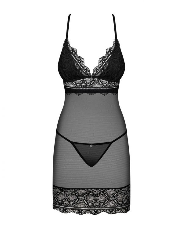 Nuisette ReneliaRencontrez la petite nuisette noire extrêmement féminine et élégante ? la nuisette super sexy de la collection Renelia. Enveloppez-vous d’une matière fine et délicate et voyez à quel point vous avez besoin d’un peu de plaisir ! Autres détails importants : – nuisette Renelia noire – soutien-gorge rembourré – confort et commodité – bretelles et fermeture réglables ? un ajustement parfait – parure bijoux sur le buste ? chic et élégance – la matière translucide enflamme l’imagination – string inclus -matière délicate (94% polyamide, 6% élasthanne)