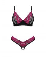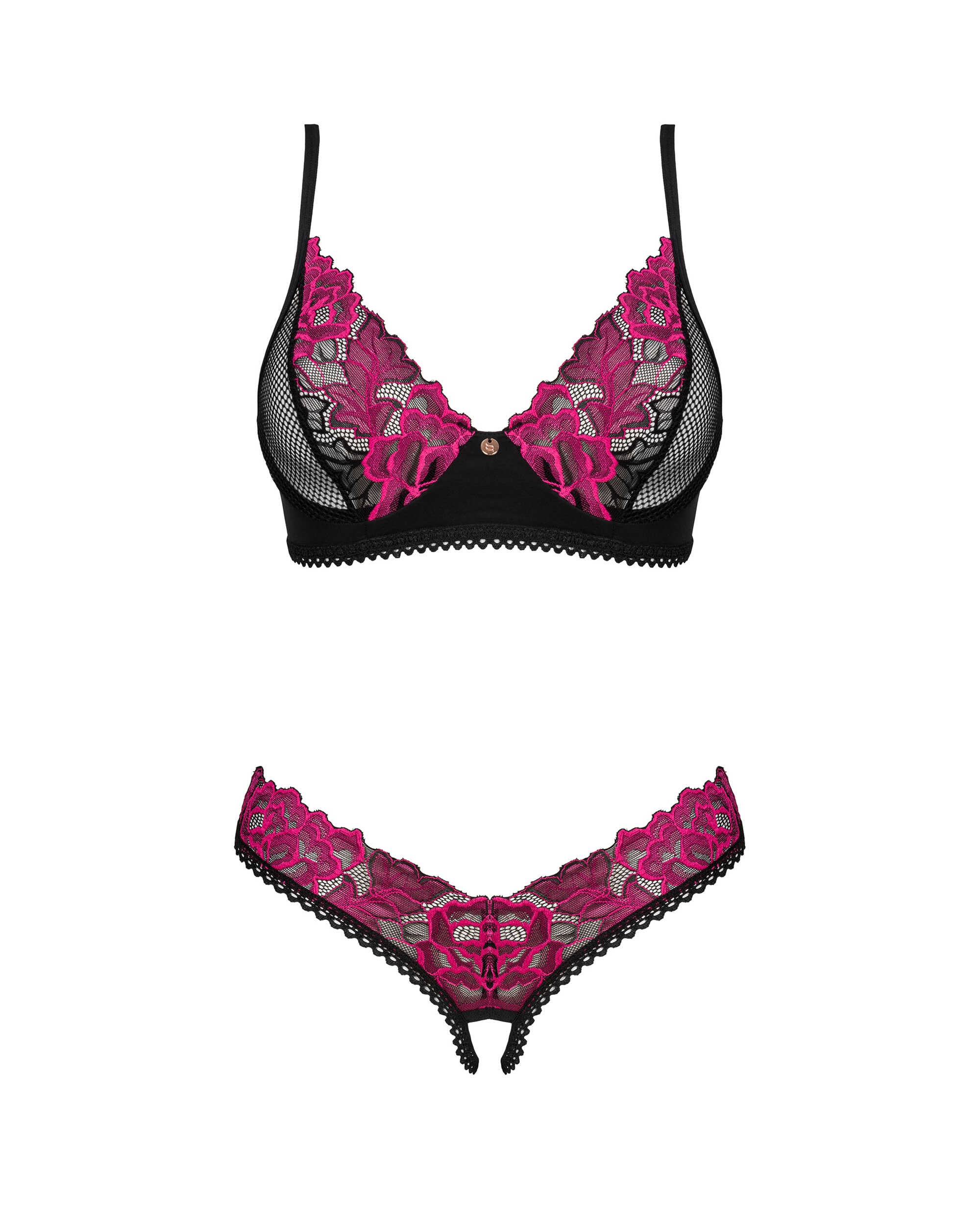 Ensemble 2 pièces ouvert RosentyDécouvrez votre côté prédateur avec ce superbe ensemble de lingerie Rosenty. La coupe sexy mettra vos charmes en lumière, et le string à l’entrejambe séduisant enflammera vos sens. Il suffit de regarder la broderie rose qui évoque les moments romantiques. Jugez-en par vous-même ! Découvrez plus de détails :- string avec entrejambe ouvert et soutien-gorge – design intriguant- fermeture à plusieurs niveaux et bretelles réglables – la garantie d’un ajustement parfait- armatures soulignant la poitrine- motif floral – attire l’attention- un détail intéressant sous la forme d’un pendentif brillant- tissu alliant douceur et souplesseComposition : 90 % polyamide, 10 % élasthanne