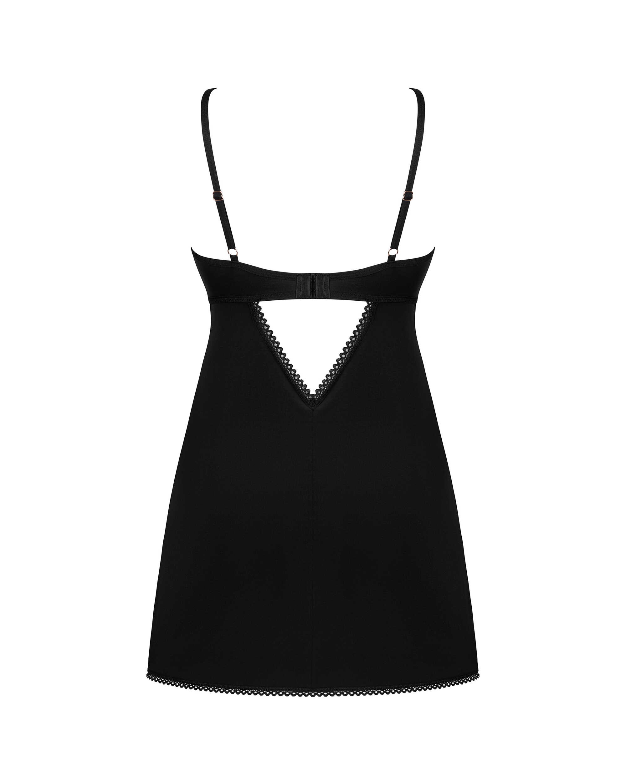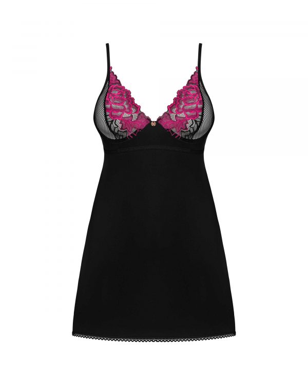 Chemise et string RosentyLa nuisette noire Rosenty est la quintessence de la subtilité et du goût raffiné. La délicate finition en dentelle dégage de la légèreté, contrastant avec le noir intense, et les empiècements avec des roses chatoyantes attirent le regard. Exprimez votre individualité et créez une atmosphère unique où que vous soyez et avec qui que ce soit.Découvrez plus de détails :- ensemble sensuel de nuisettes noires avec strings- fermeture à plusieurs niveaux et bretelles réglables pour un ajustement parfait- buste parfaitement mis en valeur grâce aux bonnets à armatures- des empiècements intrigants avec un motif de roses- un pendentif brillant de couleur or rose – un détail intéressant- tissu doux et agréable au toucher, combiné à de la dentelle et de la maille Composition : 85% polyamide, 15% élasthanne