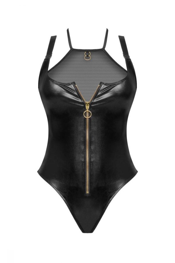 Le body « Roxana » combine du tulle et des matières de type latex pour un look sensuel et une coupe parfaite. Grâce à la fermeture crochetée à l?entrejambe, le body peut également être porté comme top pour les tenues de fête. Les accents dorés sous forme de fermeture éclair et d?anneaux au cou ajoutent élégance et luxe. Un choix idéal pour les sorties en soirée et les rencontres romantiques.L?ensemble est livré dans un élégant emballage avec une photo représentant le produit.Taille : S/M et L/XLTaille S/M : (Poitrine : 81-91 cm, B-C, Taille : 56-71 cm, Hanche : 85-97 cm)Taille L/XL : (Poitrine : 91-107 cm, C-D, Taille : 71-91 cm, Hanche : 97-112 cm)Matière : 88 % polyester, 12 % élasthanne
