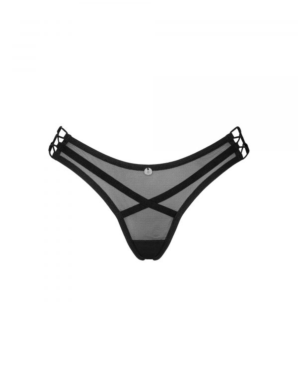String Roxelia Vous êtes fan de lingerie noire et recherchez un modèle unique pour votre garde-robe ? Ce string fonctionnera parfaitement ! Sa coupe extraordinaire vous procurera du sex-appeal à tout moment de la journée tout en vous assurant un confort optimal. Vous devez l’avoir ! Apprenez-en plus en détail :- string noir- bretelles et matière transparente ? une combinaison sexy- pendentif brillant ? il attire le regard- matière douce ? un gage de confort (94% polyamide, 6% élasthanne)
