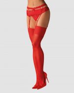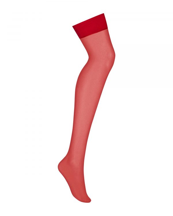 Bas sexy rouge sans dentelle. Elastique, s’adapte facilement aux différentes formes. Bas jarretière. Composition: 84% nylon, 16% Élasthanne