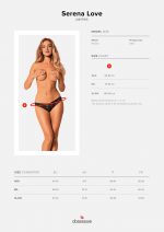 Culotte Serena Love Les culottes Serena Love féminines et extrêmement tentantes décoreront votre corps, ajoutant du sex-appeal. La coupe profonde et audacieuse allongera vos jambes et mettra joliment en valeur vos fesses. De tels sous-vêtements vous empêcheront de penser à ce qui vous attend le soir tout au long de la journée? Découvrez plus de détails :- Culotte Serena Love en dentelle fleurie- pendentif brillant sur le devant- coupe profonde à l’arrière – jambes allongées optiquement- tissus agréables au toucher (90% polyamide, 10% élasthanne)