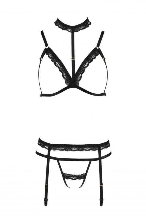 Cet ensemble 3 pièces Shelly de la marque Passion sublime la féminité, avec audace et sensualité. Ultrasexy, il se compose d’un string ouvert, d’un soutien-george cupless avec collier intégré et d’un porte-jarretelles, qui vous iront à ravir. Vous n’avez qu’à vous le procurer…Composition : 71% polyamide, 22% polyester, 7% élasthanne