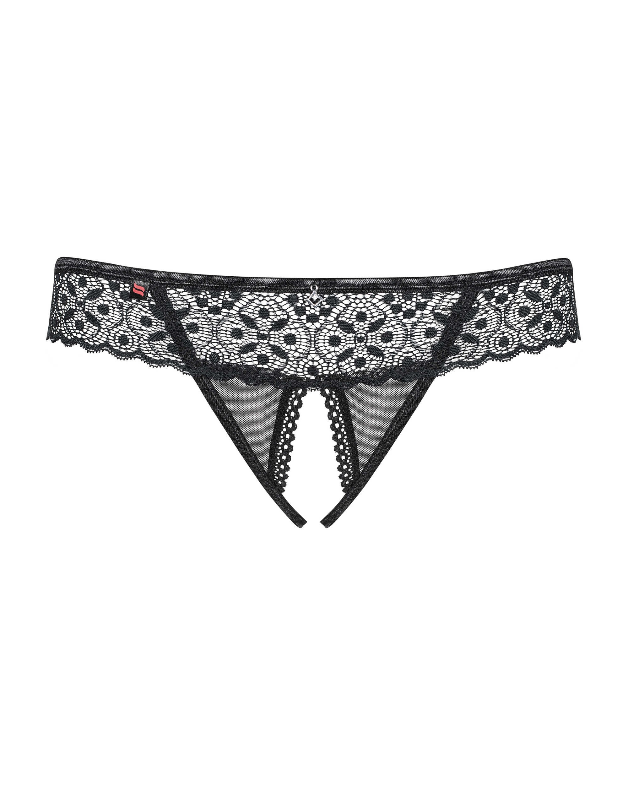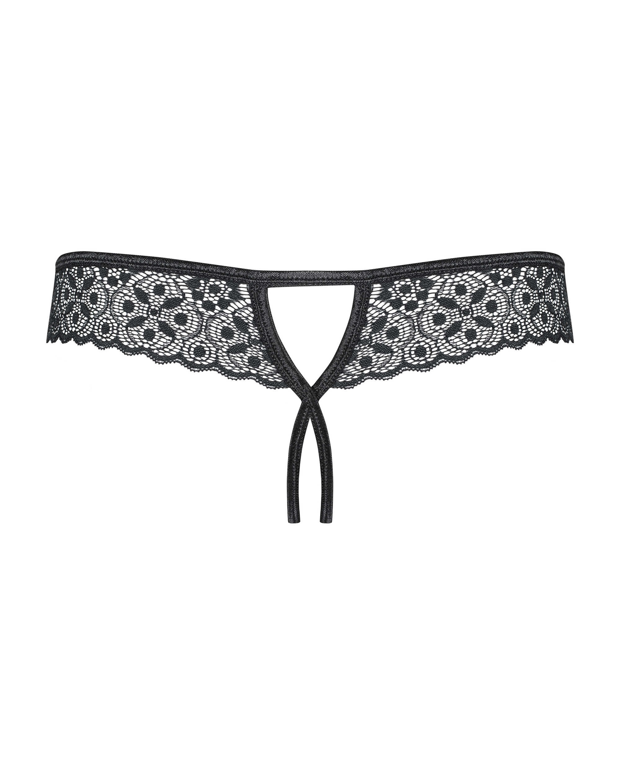 Envie de pimenter une soirée romantique avec votre amoureux? Ce string ouvert sera votre meilleur allié ! Comment ? C?est son secret – Préparez-vous pour un moment agréable et? vivez une nouvelle expérience incroyable ! Tous les détails :String coquin en lanières élastiques – entrejambe ouvertDentelle géométriqueCoupe triangulaire sur l’arrièrePendentif brillantTissus doux et élastiquesComposition : 90% polyamide, 10% élasthanne