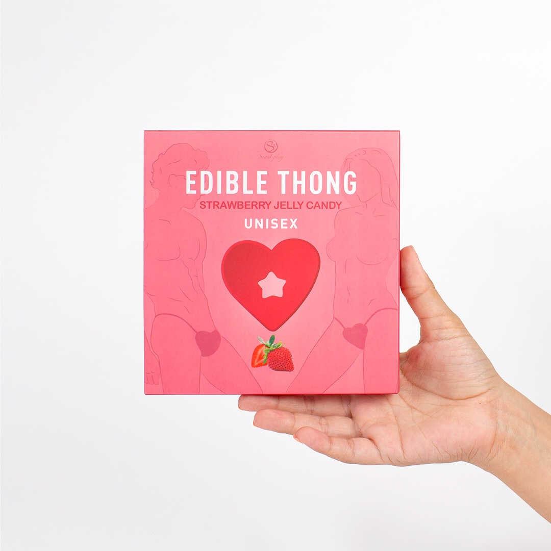 Si vous voulez donner une touche amusante et différente à vos relations ou si vous êtes tout simplement fatigué de la lingerie conventionnelle, ce string en gomme comestible est la solution. Votre partenaire savourera ce délicieux string jusqu’à la dernière bouchée. Une combinaison parfaite de goût et de plaisir, une délicieuse invitation à un banquet plein de moments de passion, de séduction et de désir. String fraise 100% comestible Unisexe Poids net approximatif: 36 grammes Référence : 3732 EAN : 8435097837321 Poids : 0,06 kg / 60 g Dimensions : 16 (largeur) x 2 (profondeur) x 16,5 (hauteur) Ingrédients: Eau, Sirop de Glucose, Sucre, Gélatine, Colorant E122, Arôme, Conservateurs E202, E211, Édulcorant E420, Acidulant E330 et agents d´enrobage végétaux. Précautions : Les trois cordons pour fixer le string ne sont pas comestibles. Ne pas utiliser en cas d’hypersensibilité ou d’allergie à l’un des ingrédients. En cas d’irritation, cesser l’utilisation. Ne pas appliquer sur le contour des yeux ou sur les plaies. Tenir hors de portée des enfants. Conserver dans un endroit frais et sec et protéger de la lumière du soleil.