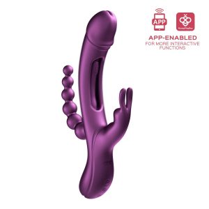 Le Satisfyer Triple Lover en silicone offre une double stimulation de vos zones érogènes ainsi que des massages sensuels pour tout le corps. Ces deux fonctions peuvent être contrôlées séparément. Ses 3 moteurs délivrent un maximum de puissance.2 en 1 : un masseur et un vibromasseur rabbit en un seul appareilStimulation simultanée du point G et du clitorisParfait pour le massage complet du corpsEntre le masseur ou le vibromasseur rabbit, nous ne savons pas lequel est apparu en premier. Mais une chose est sûre : le Satisfyer Triple Lover vous procurera un plaisir infini et des orgasmes époustouflants ! Le vibromasseur se distingue visuellement par son design incurvé et sa ligne sportive et dispose de 3 moteurs électriques intégrés. Le vibromasseur lapin stimule en même temps votre point G et votre clitoris. La fonction de massage peut être utilisée sur tout le corps, mais les sensations sont plus intenses au niveau des zones érogènes. Les 2 moteurs à commande séparée offrent chacun 12 programmes de vibration. Ce jouet de 24 cm de long est souple et s’adapte à votre corps. Les 3 moteurs offrent d’innombrables options de stimulation grâce aux fonctions point G, clitoris et massage. La tête de massage a une extrémité en forme de pointe ce qui permet de masser des zones ciblées ou plus larges. Grâce à sa finition étanche (IPX7), vous pouvez emporter le Triple Oh sous la douche ou dans le bain sans hésiter. Le silicone doux pour le corps est souple et câlin sur votre peau. Et si le jouet commence à faiblir, vous pouvez facilement le recharger avec le câble de recharge USB inclus.