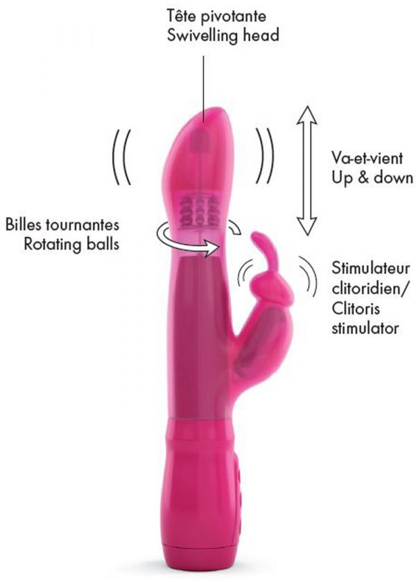 Vous allez adorer ce vibromasseur triple stimulation qui cache de nombreux atouts. Avec le Furious Rabbit, aucune de vos zones érogènes ne sera laissée à l?abandon?Avec sa tête courbée rotative, couplée à des mouvements de va-et-vient, ce Rabbit saura se glisser avec douceur et vigueur jusqu?à votre point G. Jouez avec votre plaisir, à travers les 3 modes de va-et-vient pour des sensations très réalistes et ultra-jouissives.En plus de votre point G, les 3 rangées de billes rotatives à l?intérieur de la tête viendront stimuler vos parois vaginales.Vous en voulez encore plus ? Excitez également votre clitoris avec les 7 modes de vibration du stimulateur clitoridien et atteignez l?extase Et pour un plaisir encore plus mouillé, n?hésitez pas à utiliser votre Furious Rabbit sous la douche car celui est entièrement waterproof.N?attendez plus pour vous procurer cet incroyable Rabbit Jelly sans phtalates aux dimensions très satisfaisantes Matière Jelly safe en TPE sans phtalateVibromasseur rabbit triple stimulation : point G, vagin et clitorisTête pivotante et 5 modes de va-et-vient pour le point G7 modes de vibration pour le stimulateur clitoridienFormat : 24.5 x ø 3.6 cm (12 cm insérable)? Waterproof.Piles : 4xAAA Non incluses