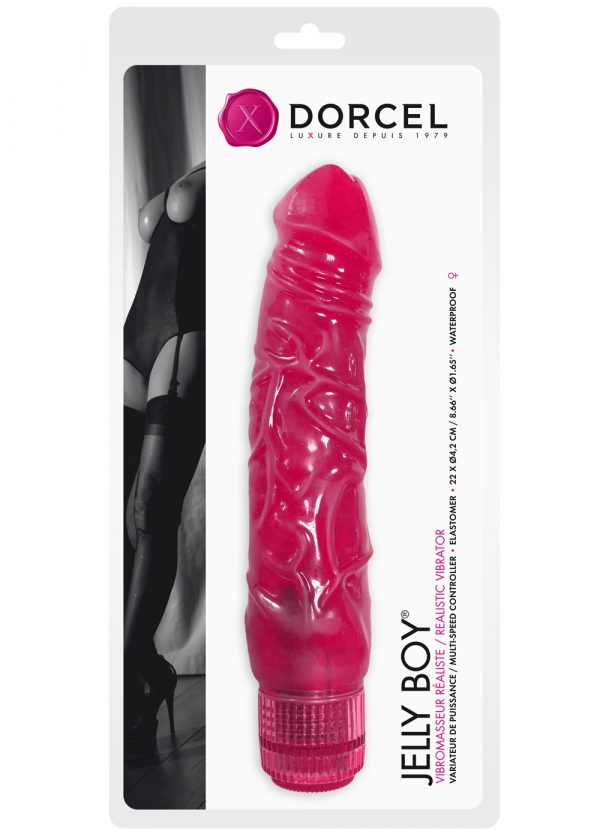 Le vibromasseur Jelly Boy a tout pour plaire : une couleur rose ultra-féminine et une texture réaliste en élastomère sans phtalate.Ce vibromasseur possède de belles nervures plus vrai que nature et des mensurations très gourmandes. 22 cm de longueur et 4 cm de diamètre de plaisirs pour atteindre le 7ème ciel Son gland ultra doux viendra titiller votre clitoris avec amour procurant des sensations encore plus réelles.Très vigoureux, le Jelly Boy vous propose des vibrations intenses. Situé à la base de votre vibromasseur, le variateur de puissance vous permettra de nuancer les vibrations pour un plaisir extrême et sur-mesure.Egalement étanche, vous pouvez faire connaissance avec Monsieur Jelly sous la douche.Vibromasseur réaliste nervuréTexture TPE ?jelly? sans phtalatesGland ultra doux? Dimensions : 22cm x ø 4,2 cm (17,5 insérable)Vibrant : Variateur de puissanceÉtanchePiles : 2xAA non-incluses
