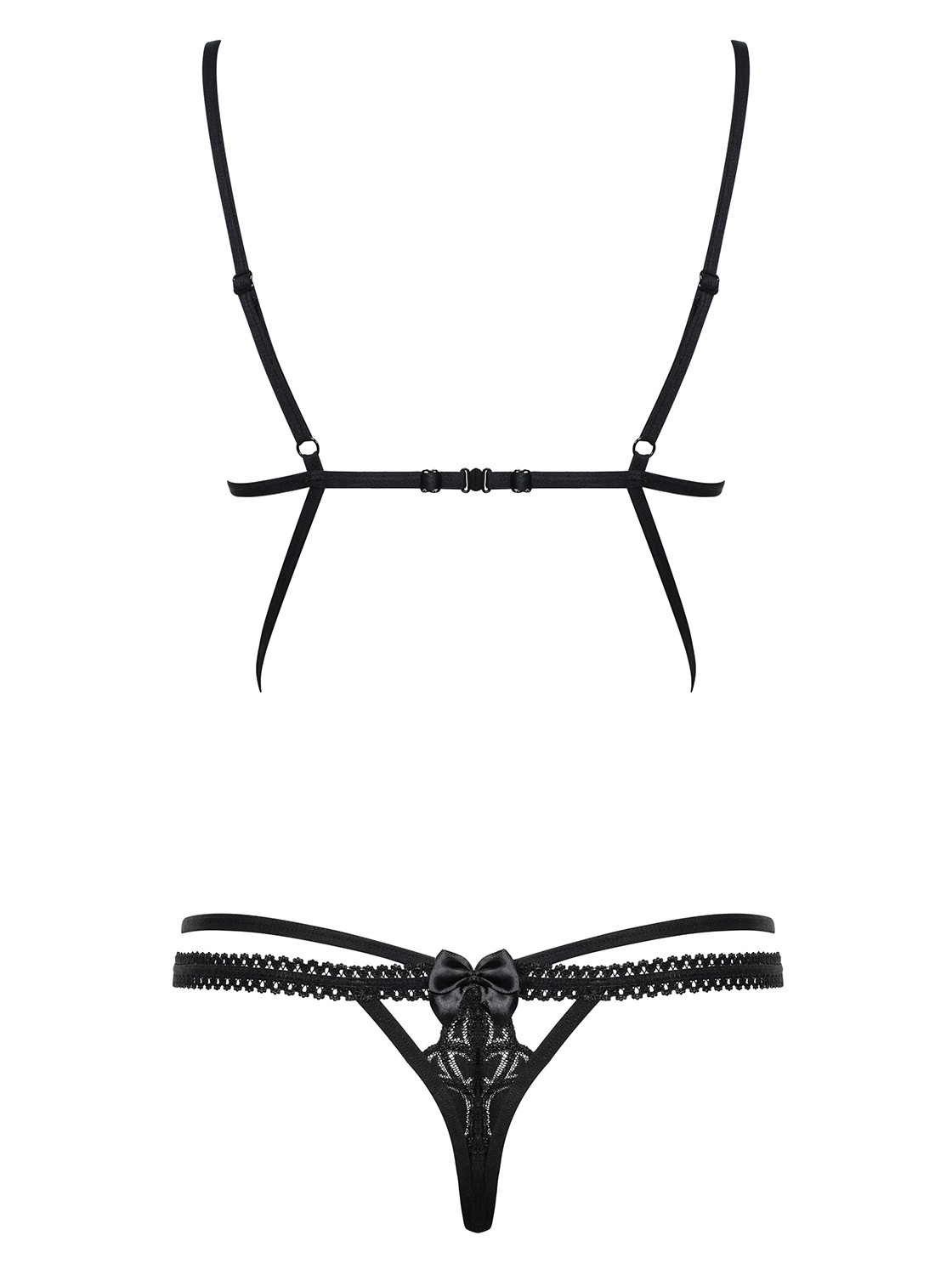 Un body ultra sexy noir qui ne cachera pas grand chose de votre corps, ou juste le principal. Ce body très dénudé est composé de multiples lanières avec des bordures dentelle et ornements de poitrine très en vogue. Sur l’avant comme l’arrière, il est décoré de noeuds satin. Ce teddy coquin est composé de 90% polyamide, 10% elasthanne.Découvrir toute la collection de lingerie sexy Wonderia Obsessive